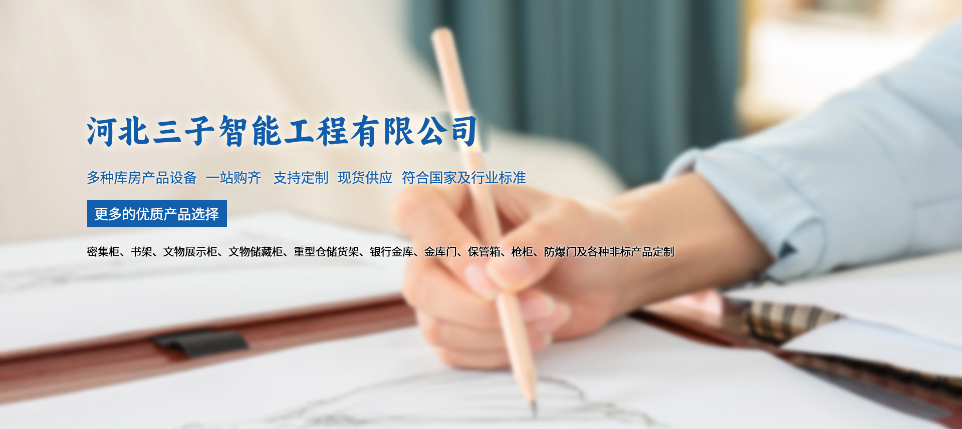 河北三子智能工程有限公司主營密集柜、書架、文物展示柜、文物儲(chǔ)藏柜、重型倉儲(chǔ)貨架、銀行金庫、金庫門、保管箱、槍柜、防爆門及各種非標(biāo)產(chǎn)品定制。我們集研發(fā),設(shè)計(jì),生產(chǎn),銷售和服務(wù)于一體,擁有國內(nèi)先進(jìn)的設(shè)備和專業(yè)的制作團(tuán)隊(duì),我們秉承踏實(shí),創(chuàng)新,責(zé)任的企業(yè)精神服務(wù)于檔案存儲(chǔ),倉儲(chǔ)物流,農(nóng)業(yè)部,博物館,美術(shù)館,銀行,部隊(duì),學(xué)校等多個(gè)領(lǐng)域,我們始終堅(jiān)持用戶至上和精益求精為客戶提供優(yōu)質(zhì)的產(chǎn)品及服務(wù)。
